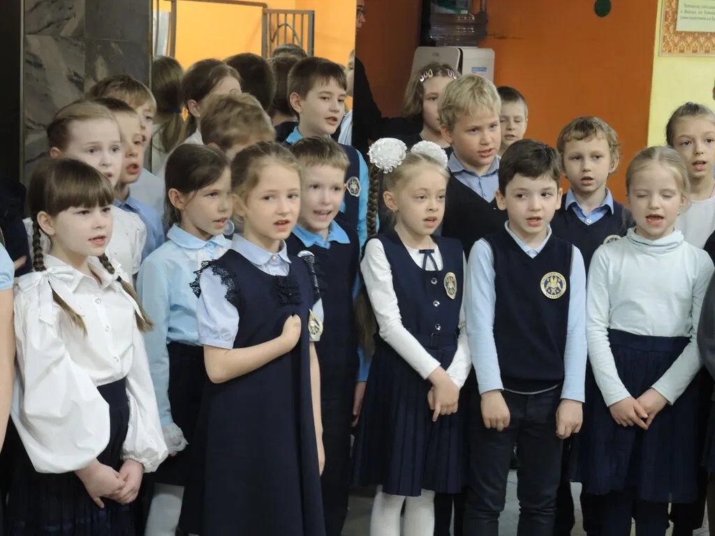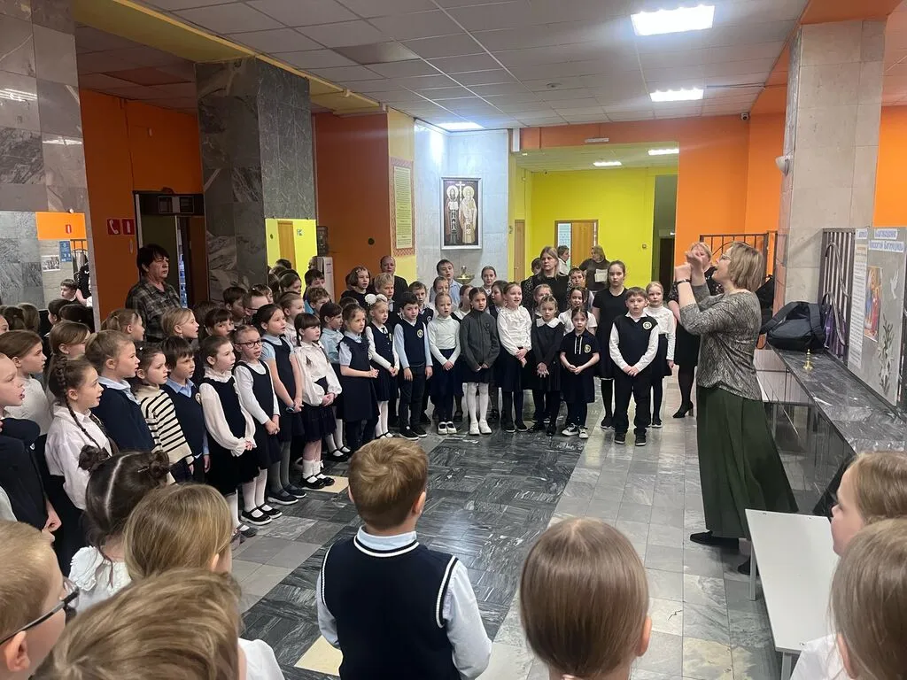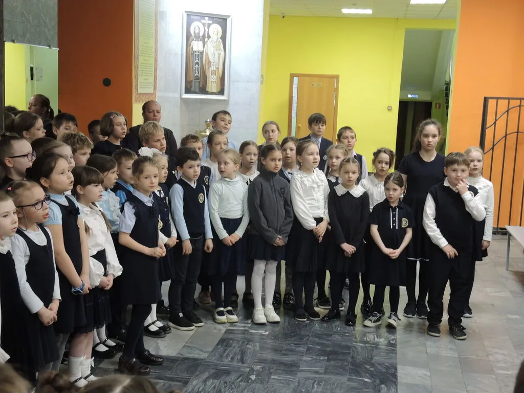 Этот светлый праздник наши младшие школьники встретили особенно трепетно - в фойе гимназии ребята собрались вместе, чтобы возвеличить Пресвятую Богородицу молитвой и песнями.
