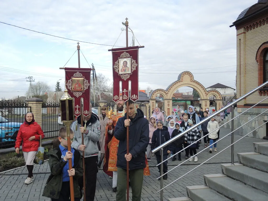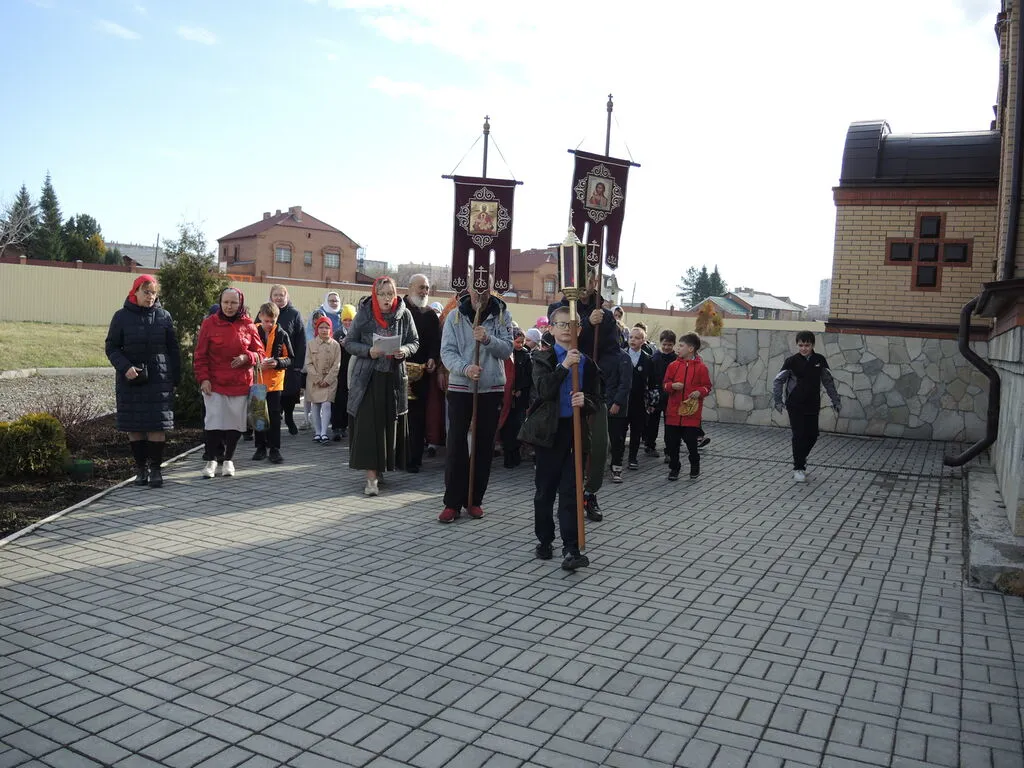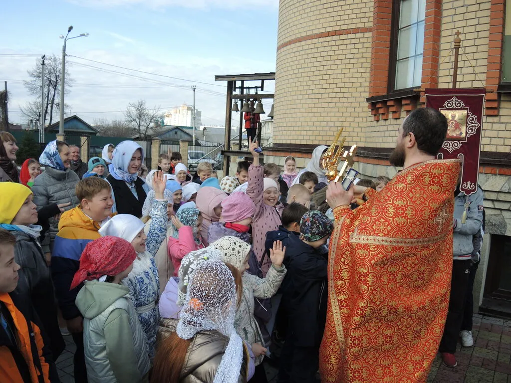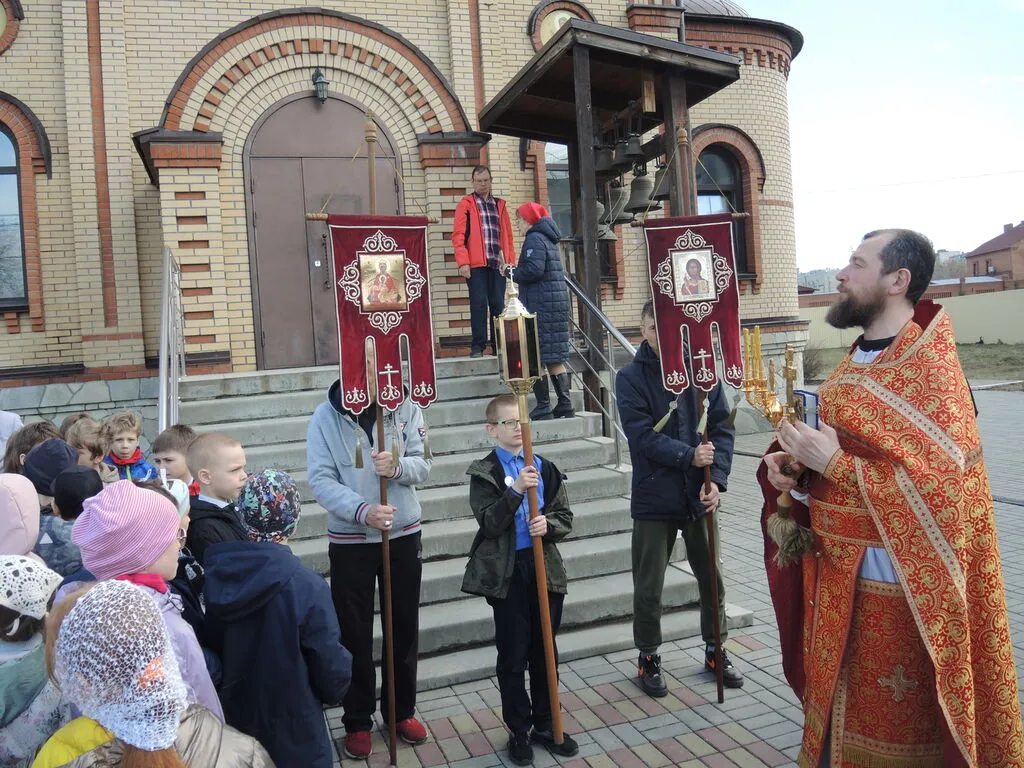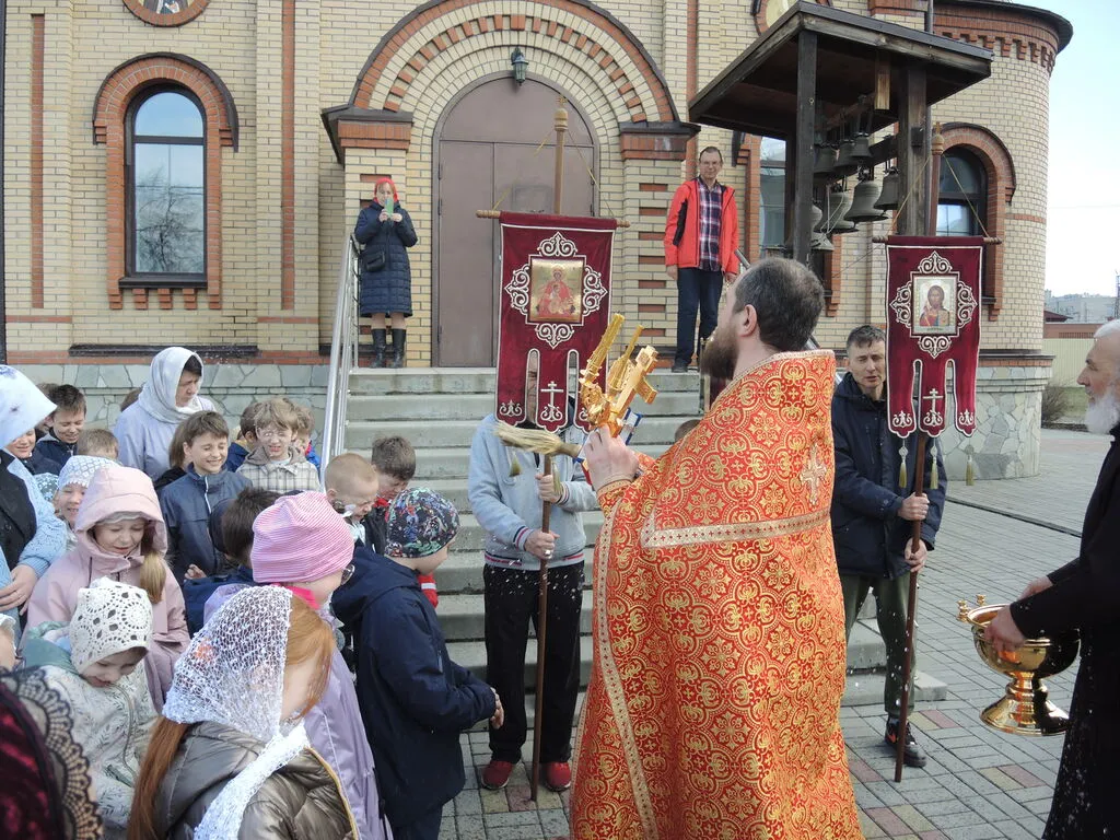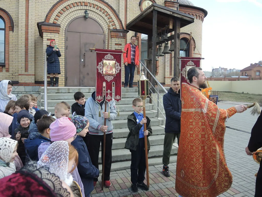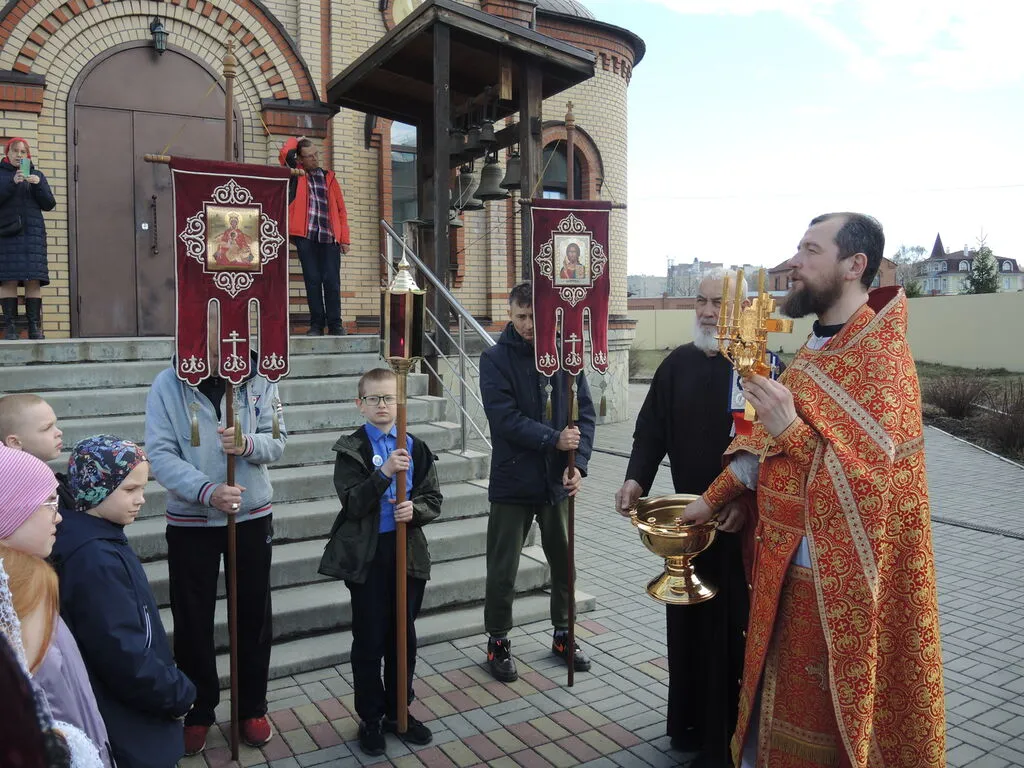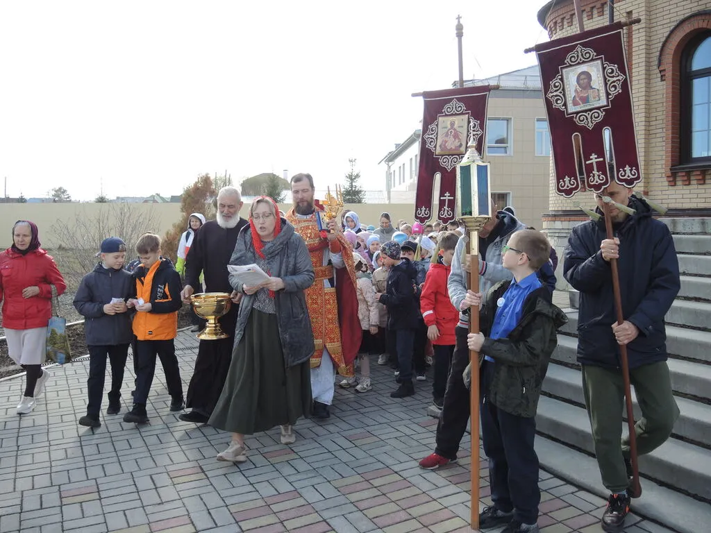Дети, родители и педагоги вместе прошли крестным ходом - с иконами, хоругвями и радостным тропарем «Христос Воскресе!».