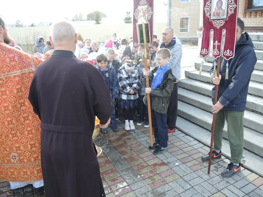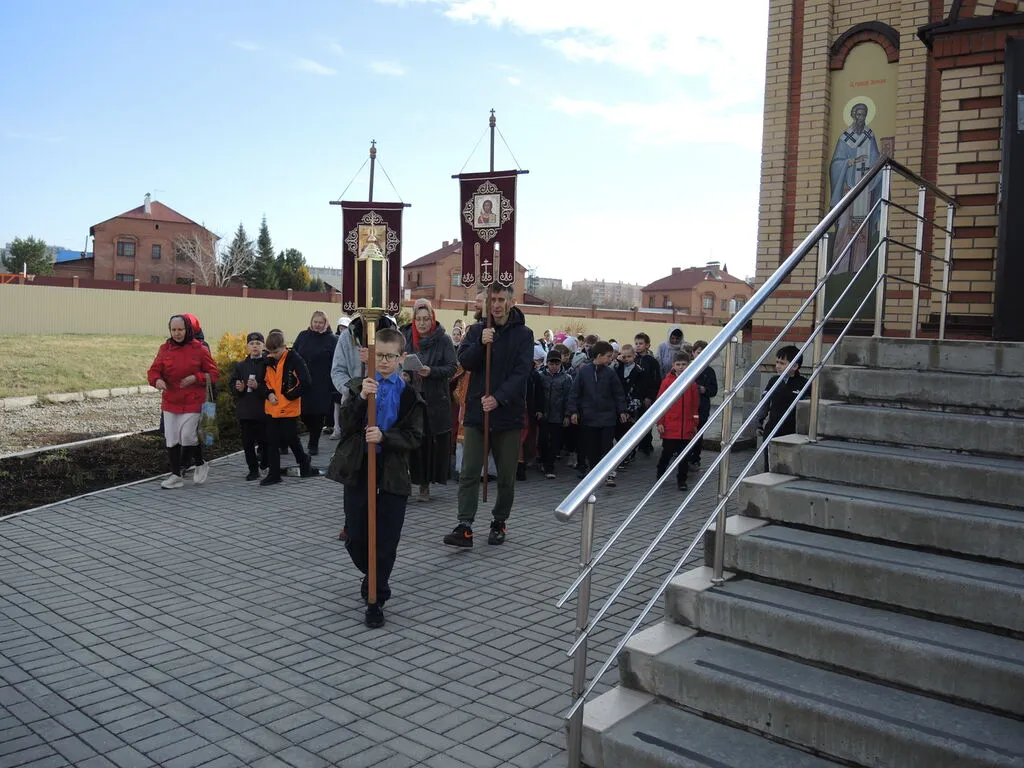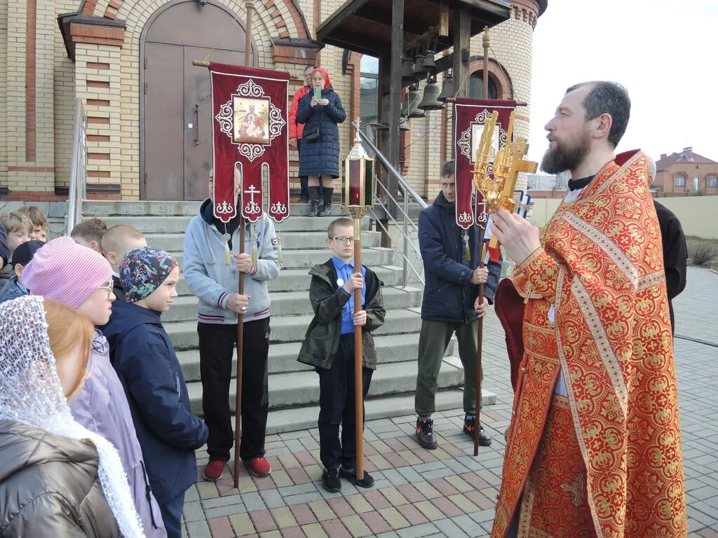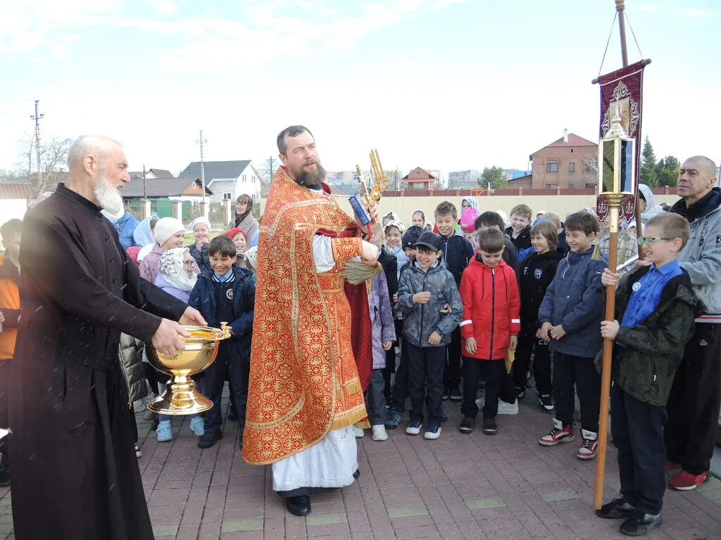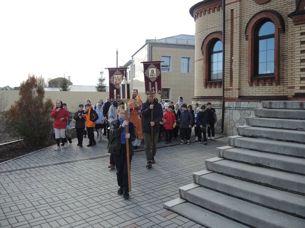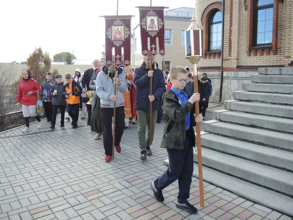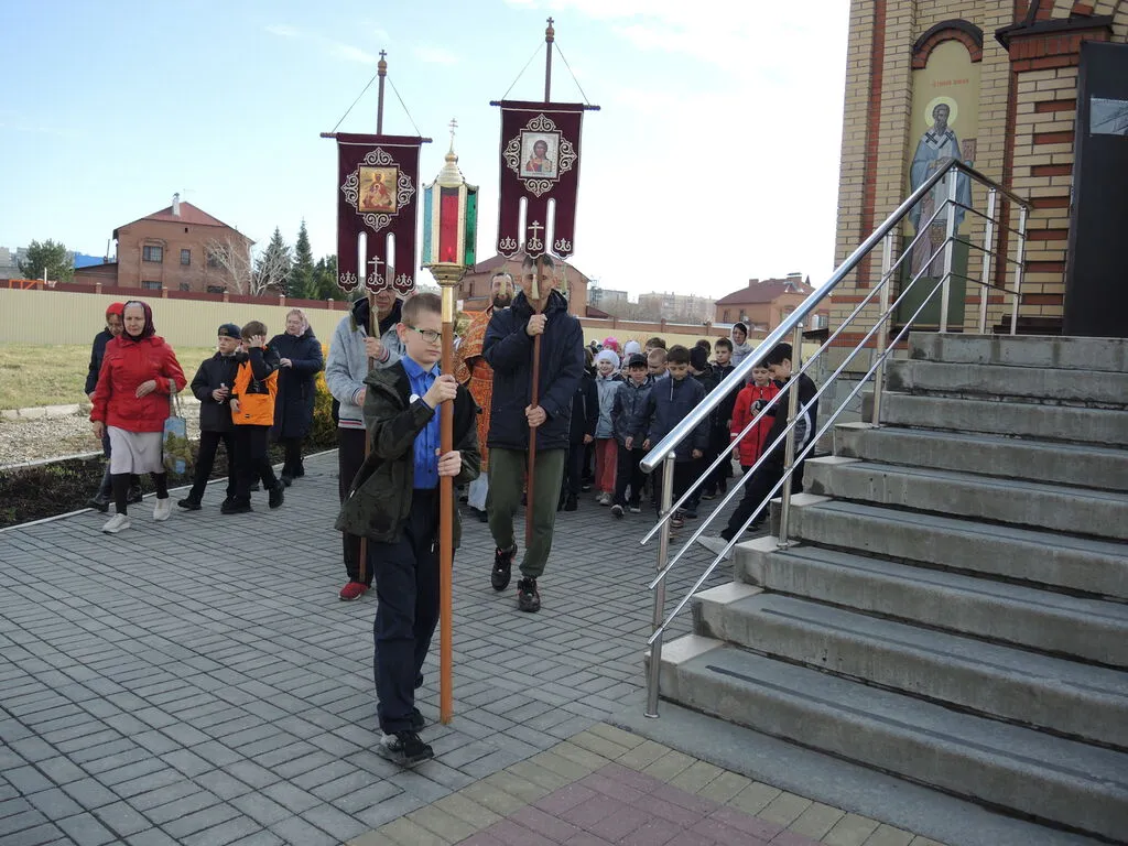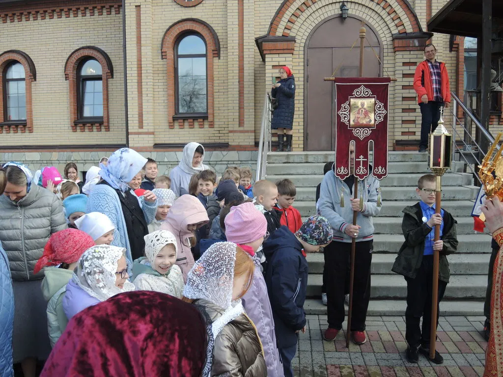 Дети, родители и педагоги вместе прошли крестным ходом - с иконами, хоругвями и радостным тропарем «Христос Воскресе!».