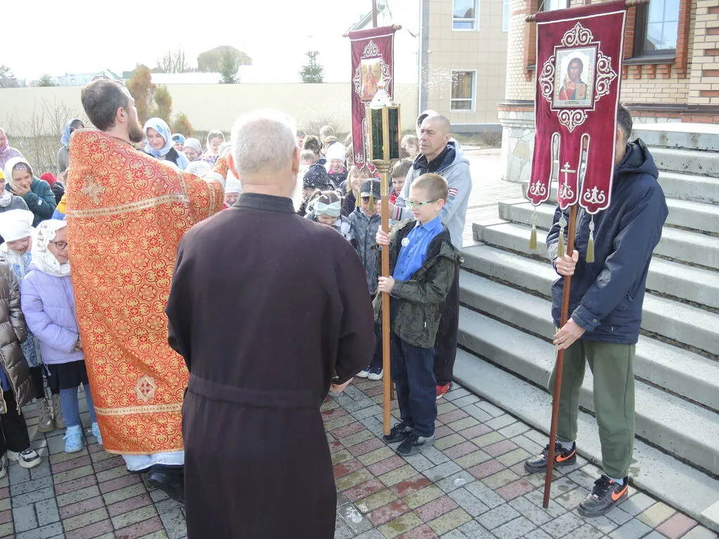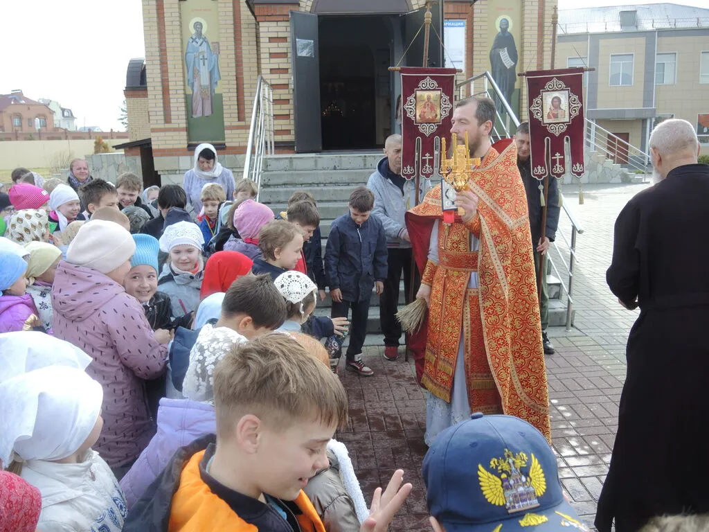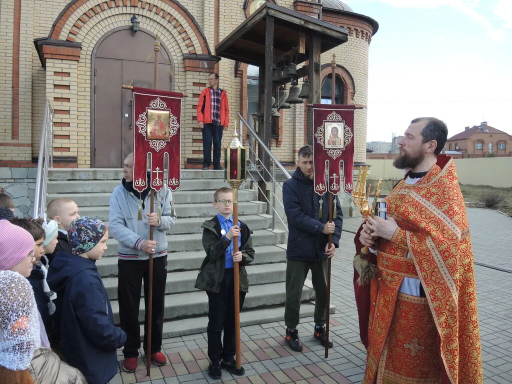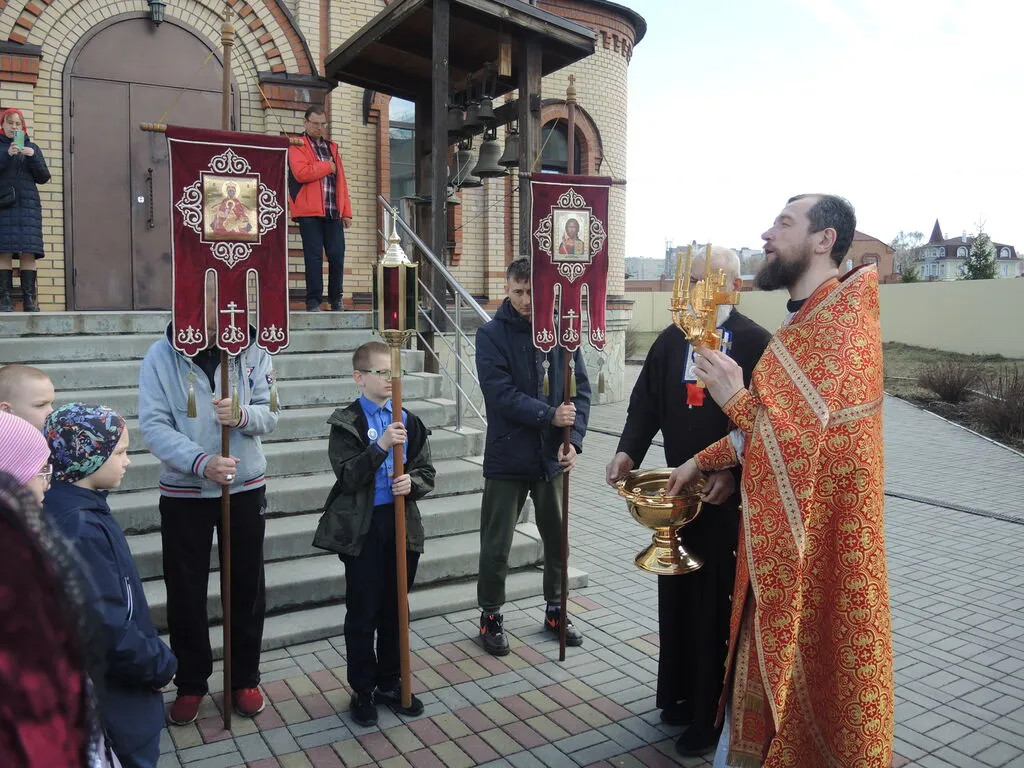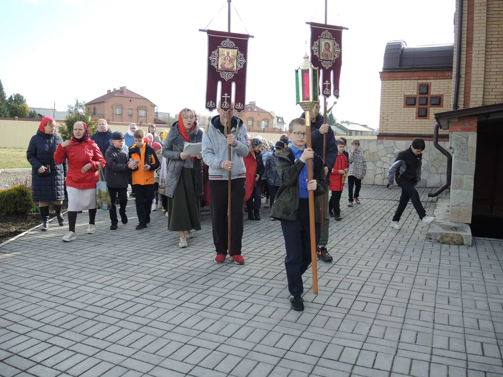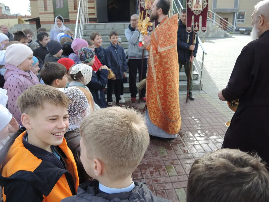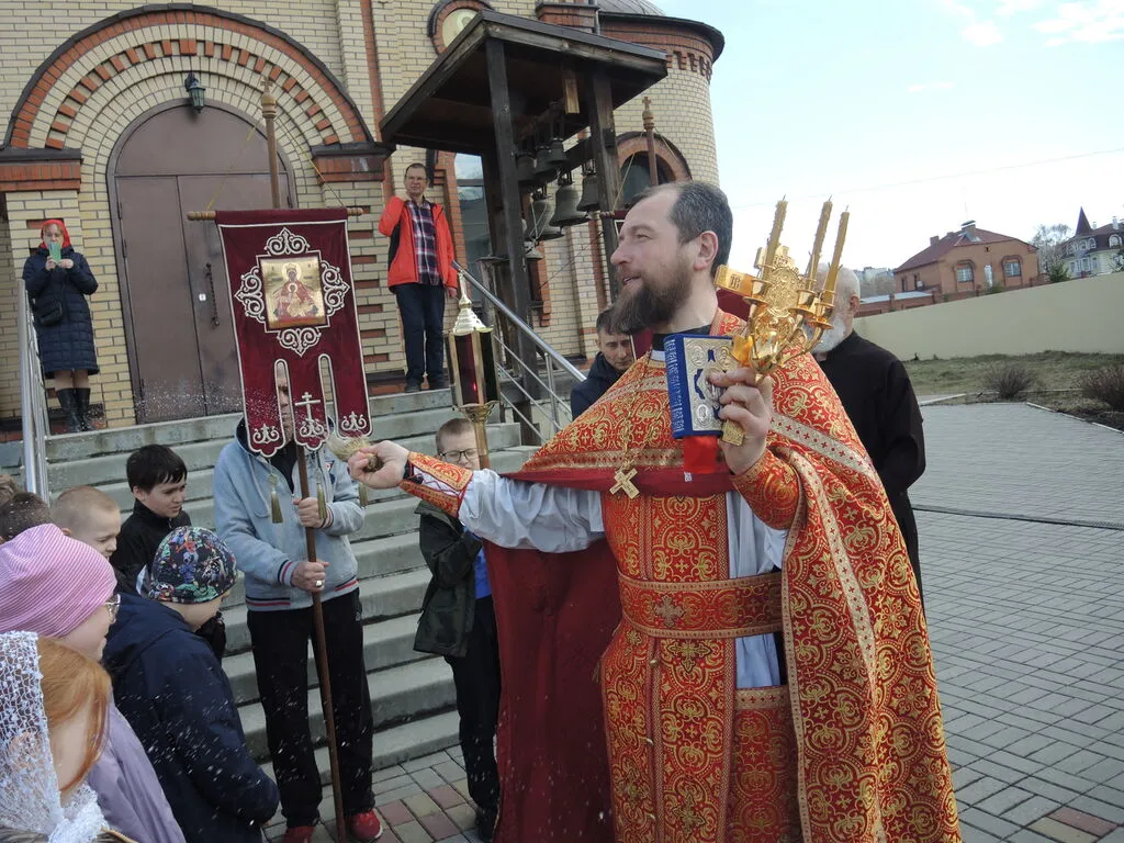 Дети, родители и педагоги вместе прошли крестным ходом - с иконами, хоругвями и радостным тропарем «Христос Воскресе!».