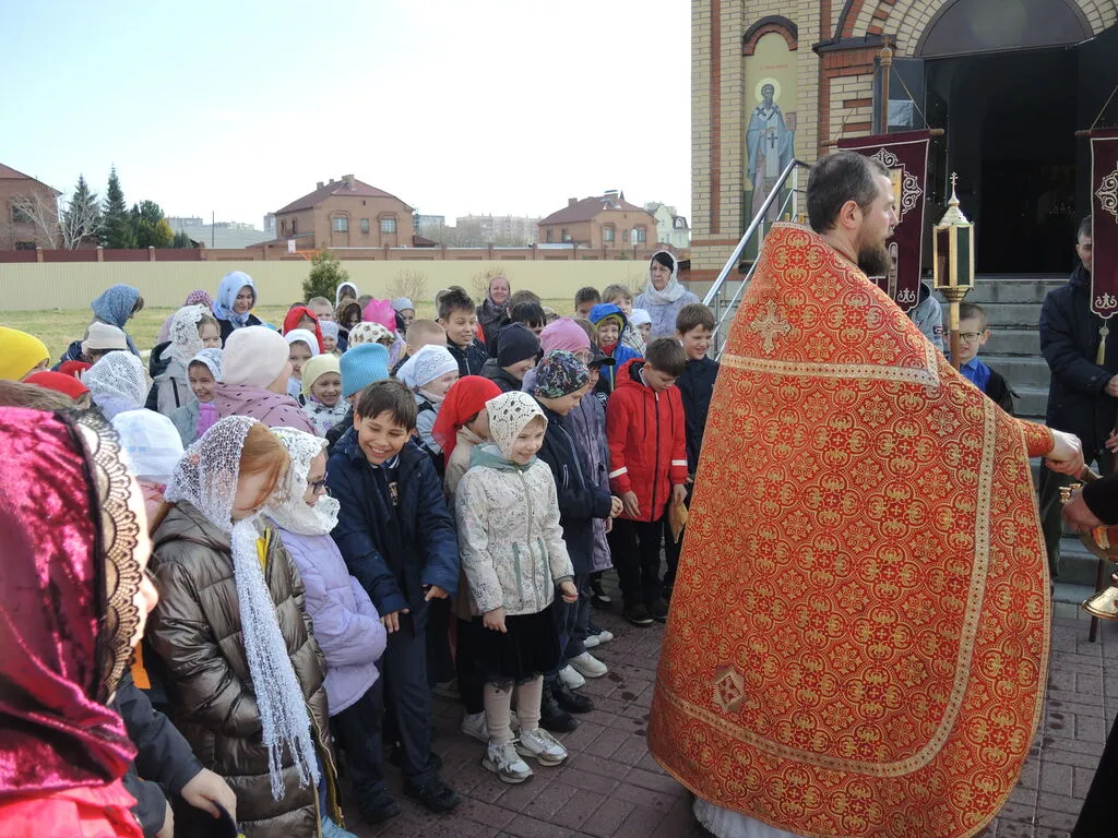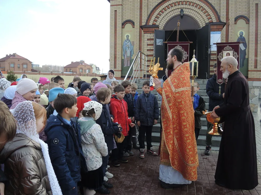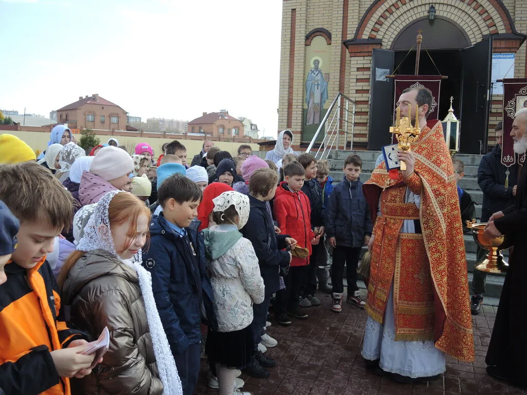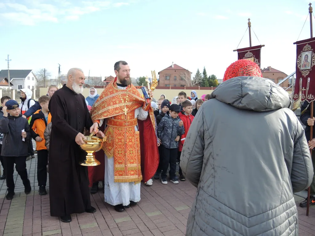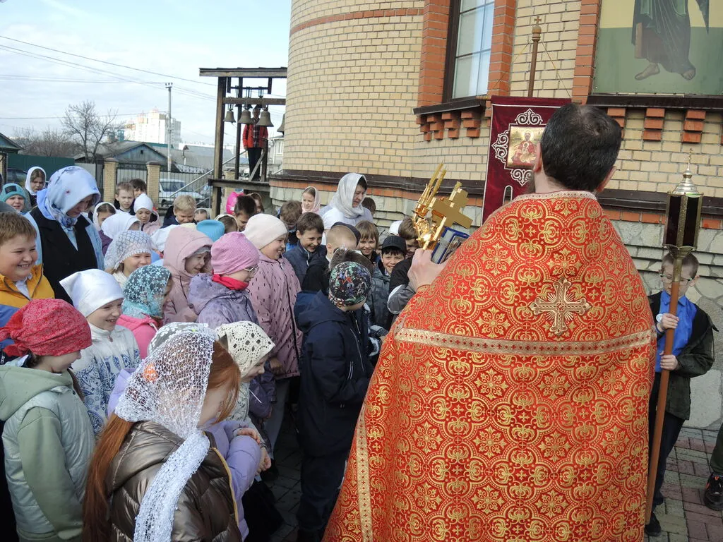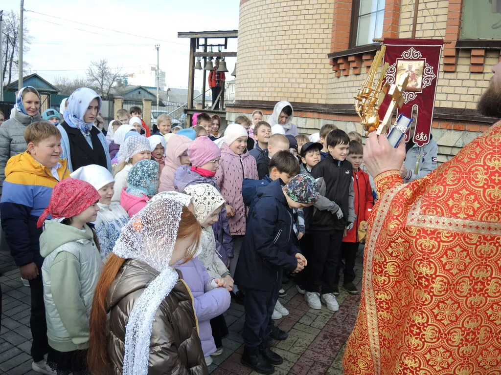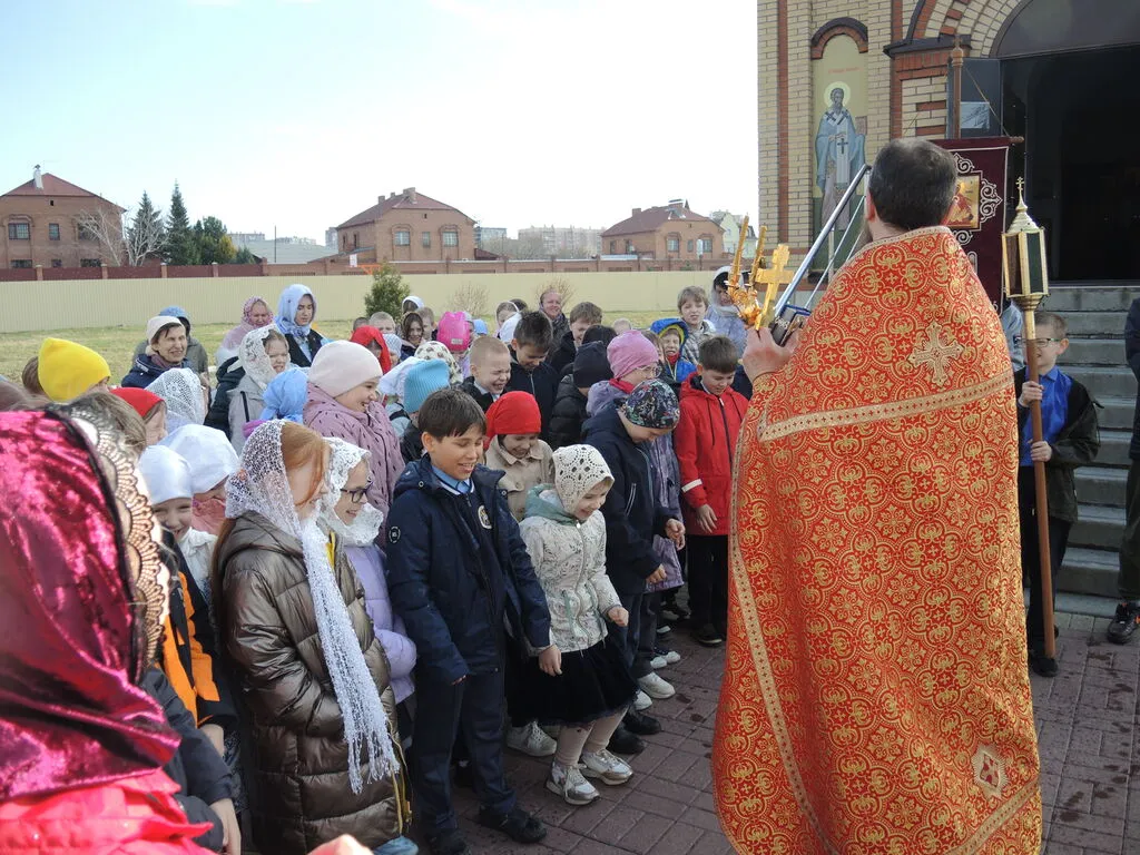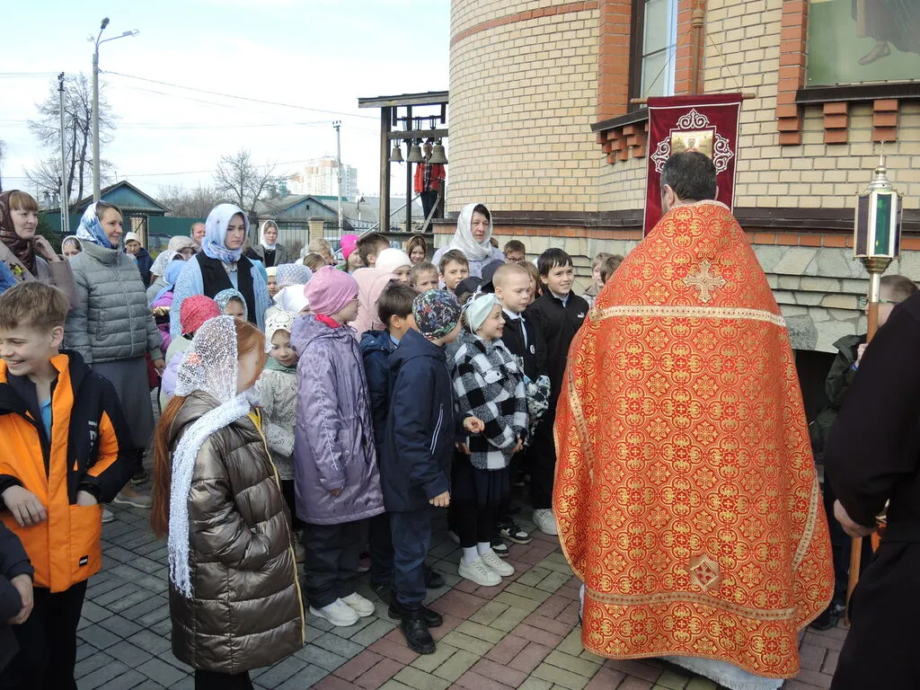 Дети, родители и педагоги вместе прошли крестным ходом - с иконами, хоругвями и радостным тропарем «Христос Воскресе!».