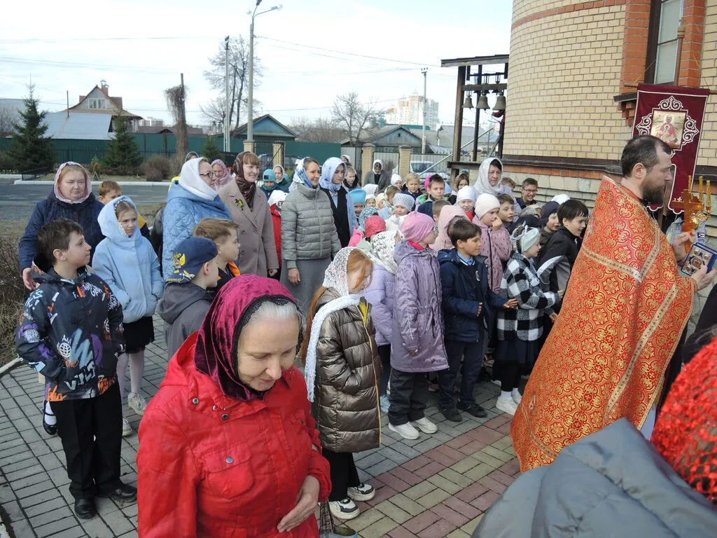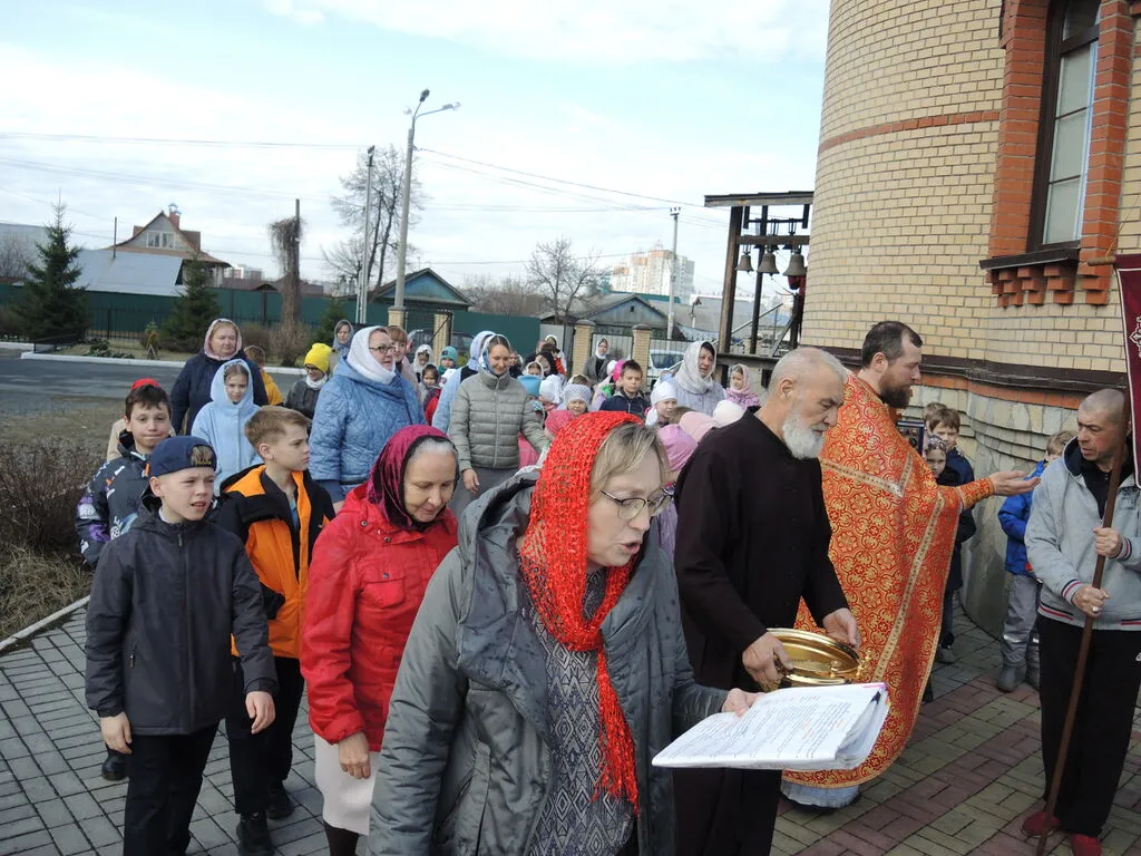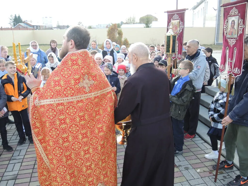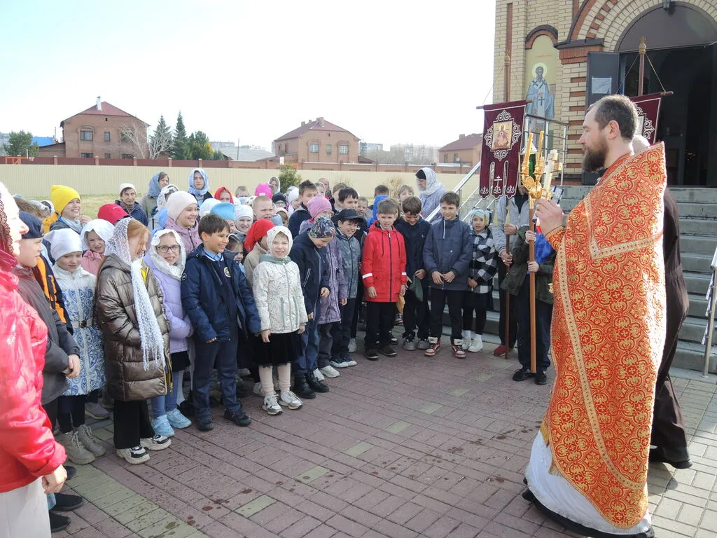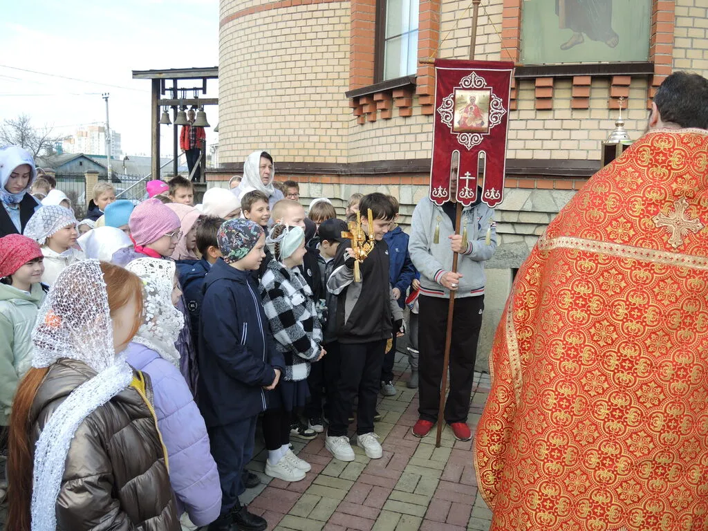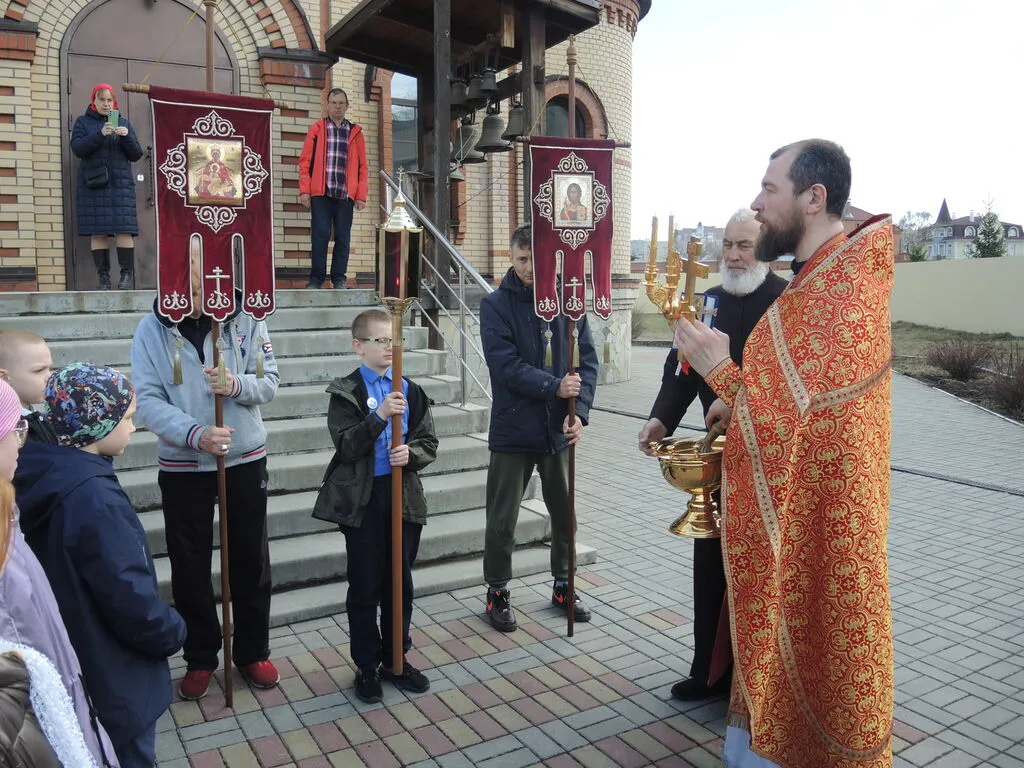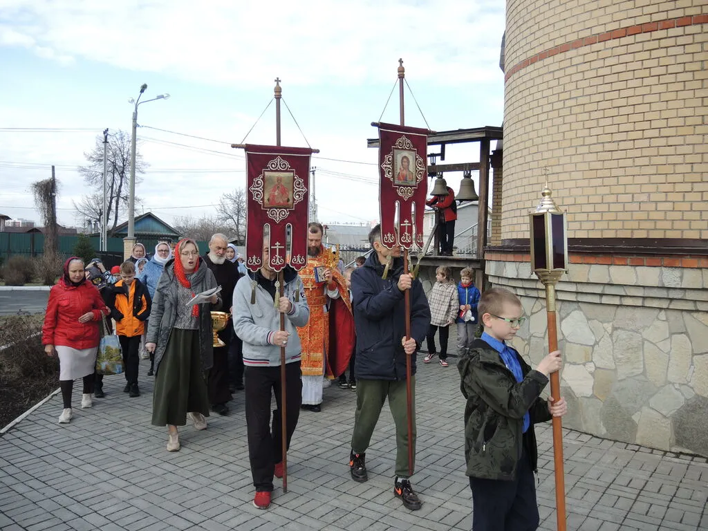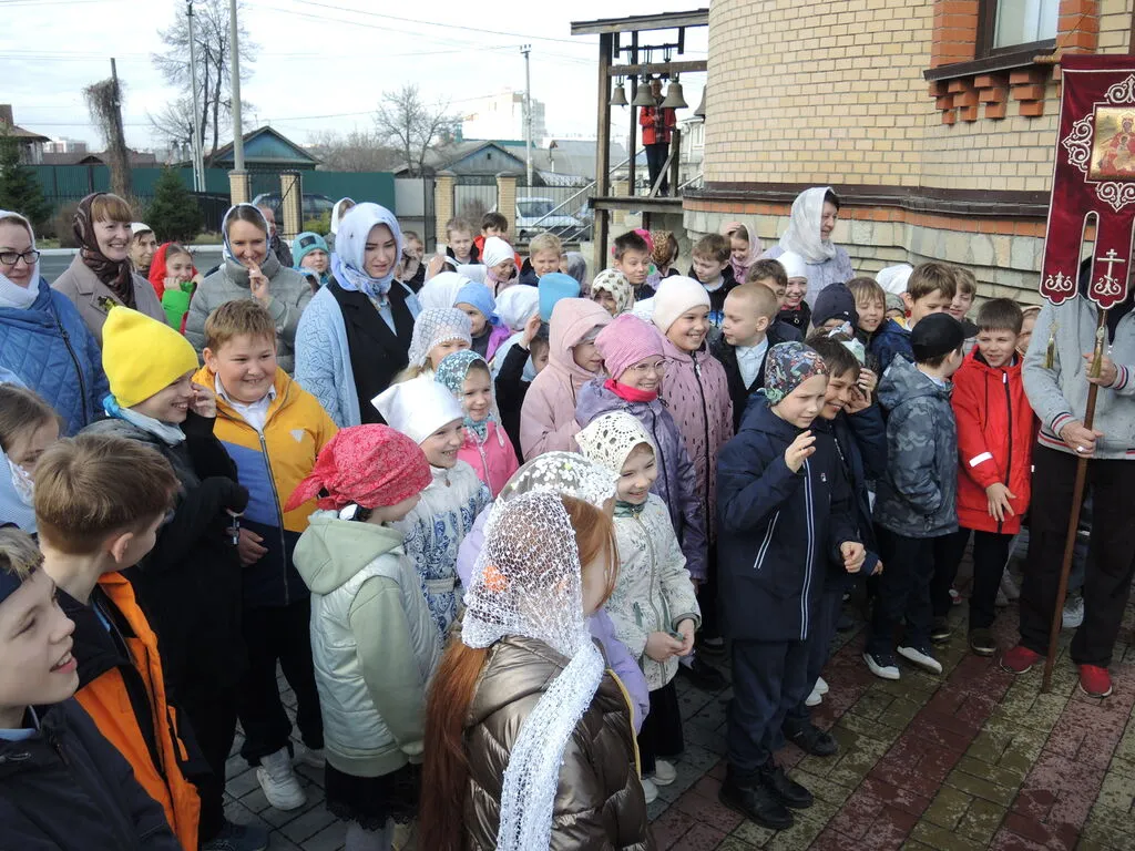 Дети, родители и педагоги вместе прошли крестным ходом - с иконами, хоругвями и радостным тропарем «Христос Воскресе!».