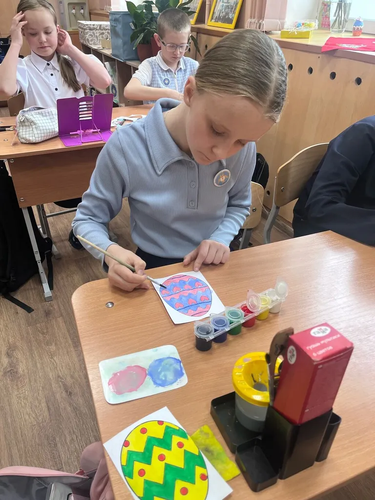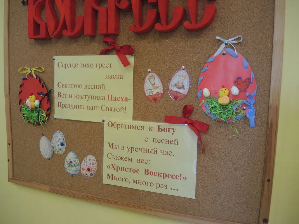 Ребята вместе с классными руководителями, а некоторые и с родителями, готовились к этому дню заранее: вырезали и раскрашивали пасхальные яйца, украшали окна, мастерили композиции на тему Пасхи и весны.